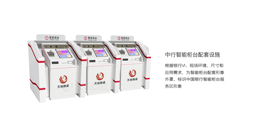 北京天驰融盛根据银行VI、现场环境、尺寸和应用需求,为智能柜台配套形象外罩,标识中国银行智能柜台服务区形象,提升智能柜台外观的观赏性,提升服务体验。